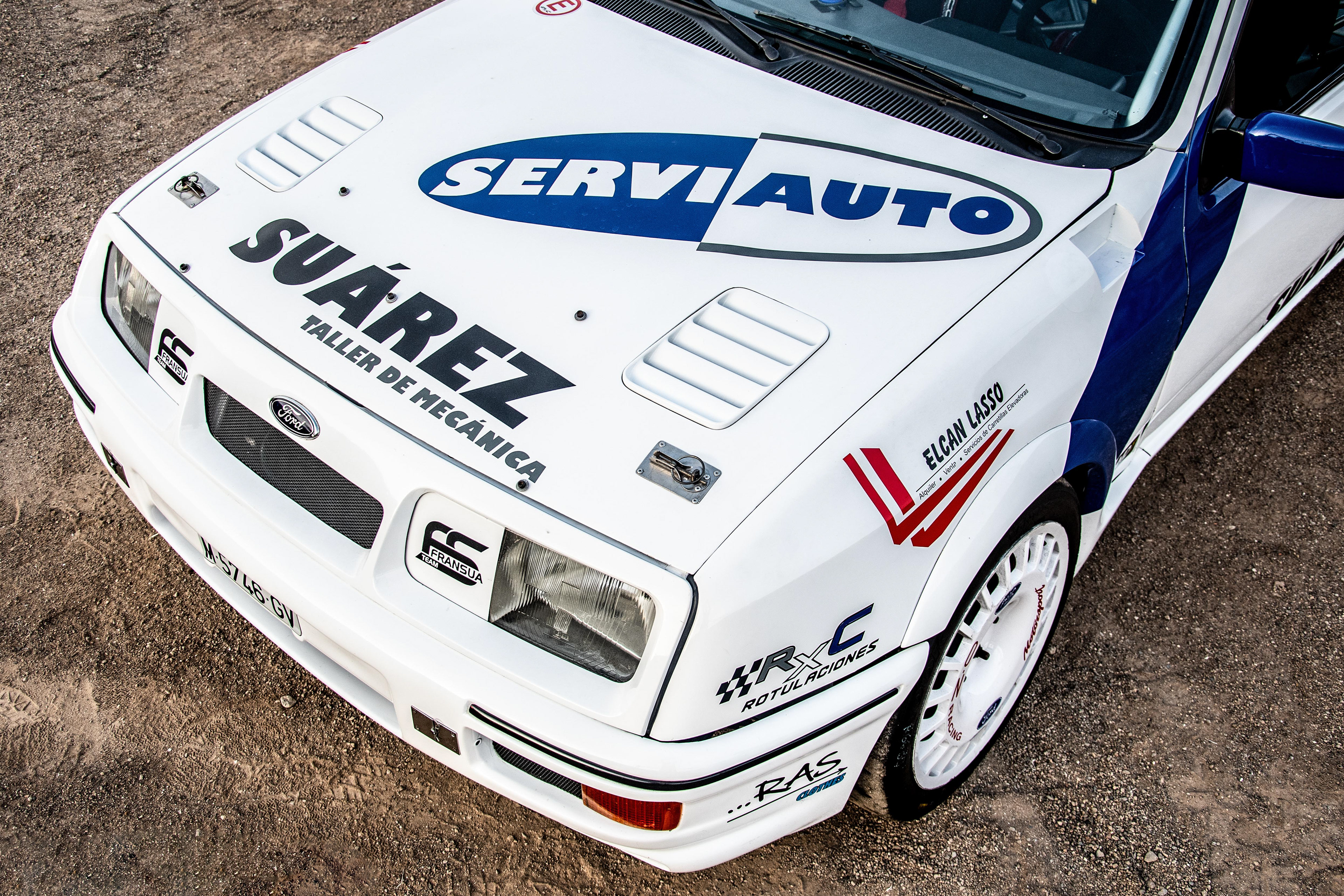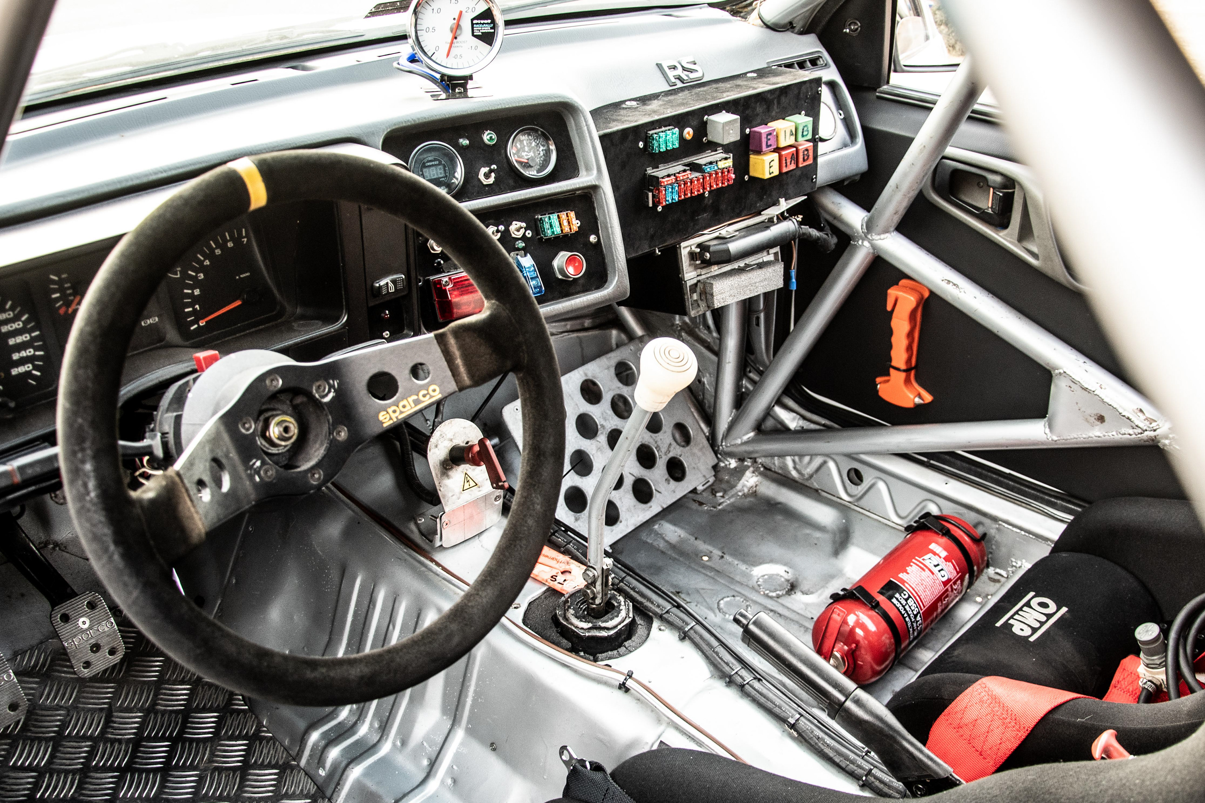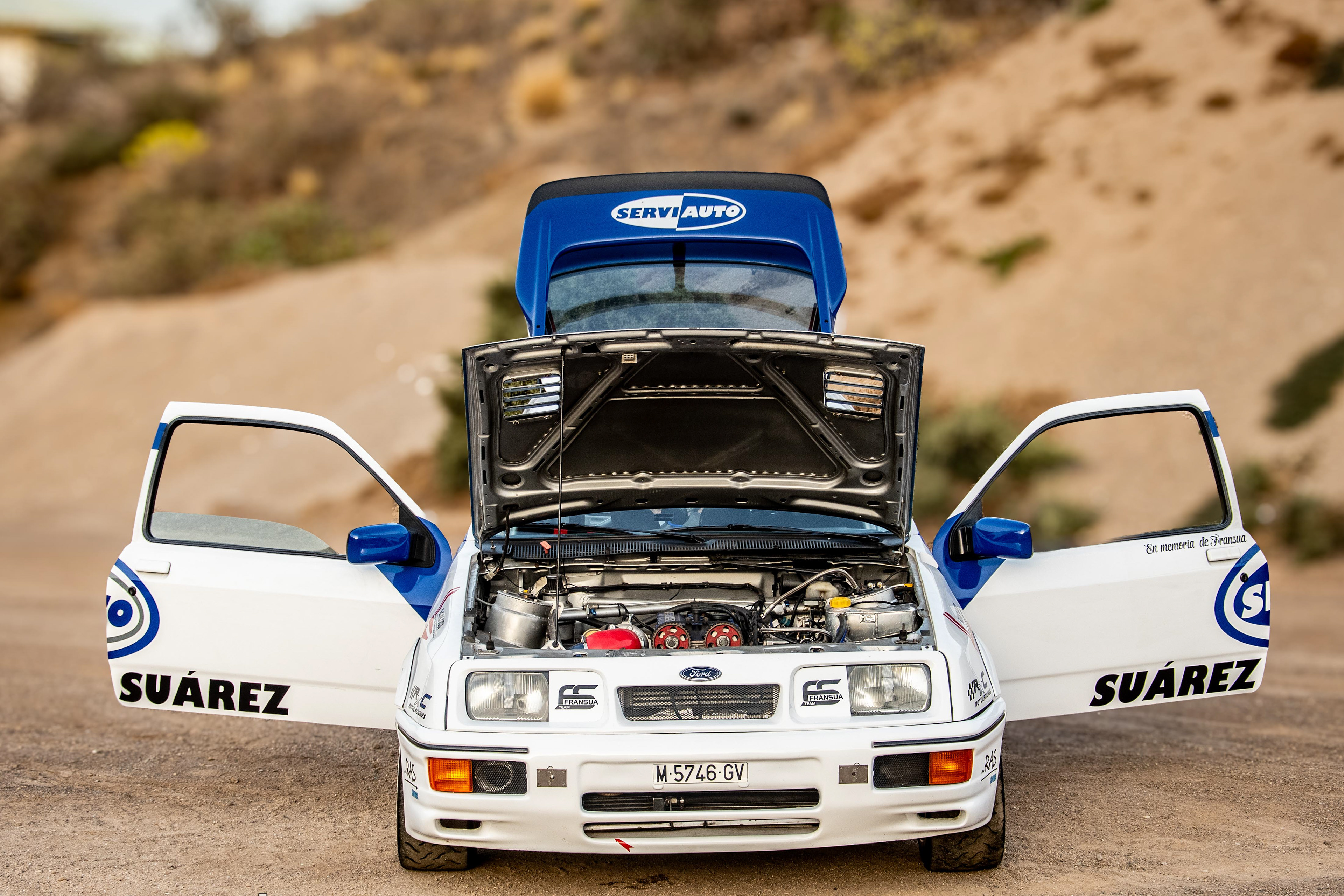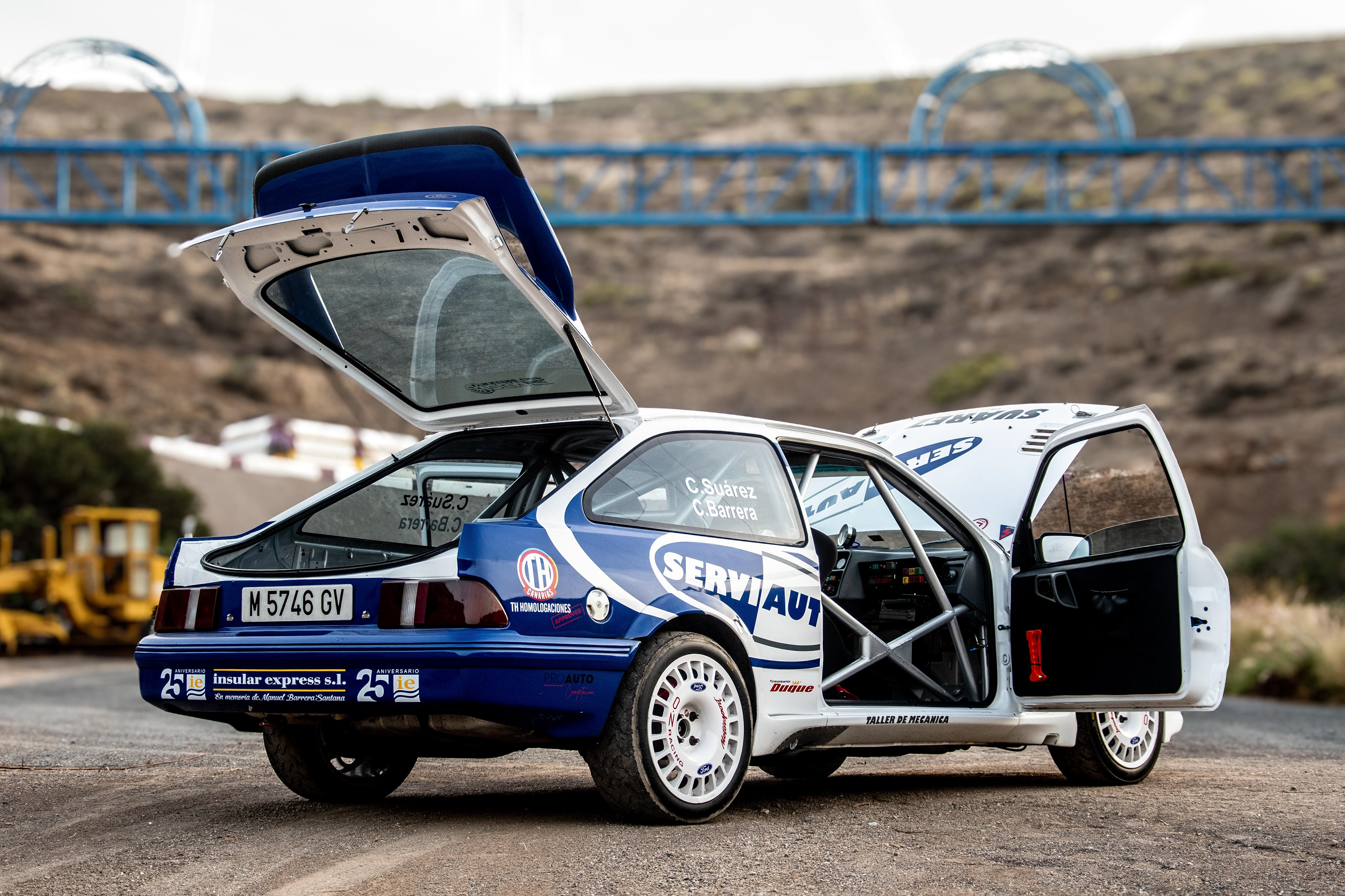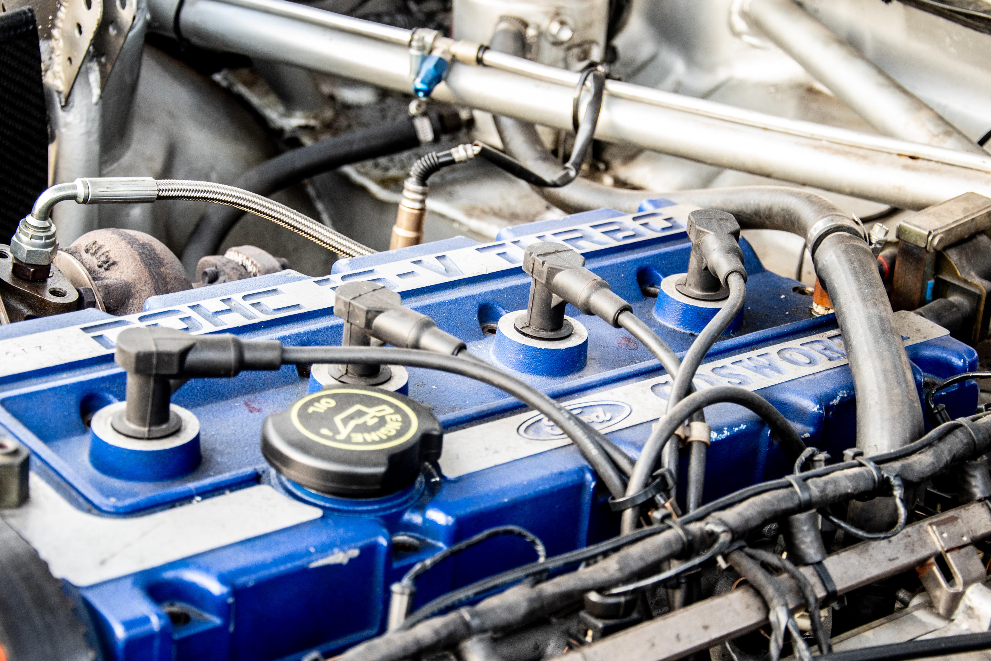 Con la mente puesta en los rallys, decidieron utilizar la versión de tres puertas del XR4i con ciertas modificaciones, ya que era más ligero y mas rígido. Mirando con lupa la aerodinámica, se realizaron numerosos test en el túnel del viento y en el circuito de Nardo, en Italia: Se hacía fundamental el enorme alerón trasero para que a alta velocidad el coche siguiese tocando el asfalto. Se optó por utilizar una caja de cambios Borg-Warner T5 sacada de un Mustang pero con numerosos cambios para poder funcionar bien con el nuevo motor Cosworth.
